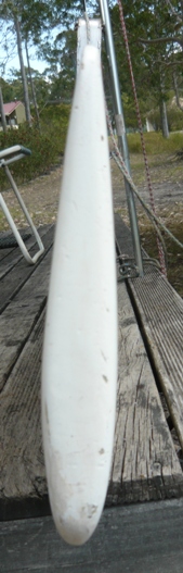 The blade is 900mm long from the waterline, 300mm deep fore and aft and a 42mm thick foil