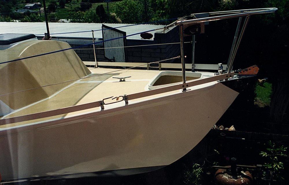I phoned Gough Plastics in Townsville about the idea of an extruded Polyethylene toe rail. They don't make anything like that (do rotomoulding, tanks etc) but suggested that "Dotmar" in Brisbane could machine toerail from say 2"x1" stock, much like the original wooden toerail was routed to shape.