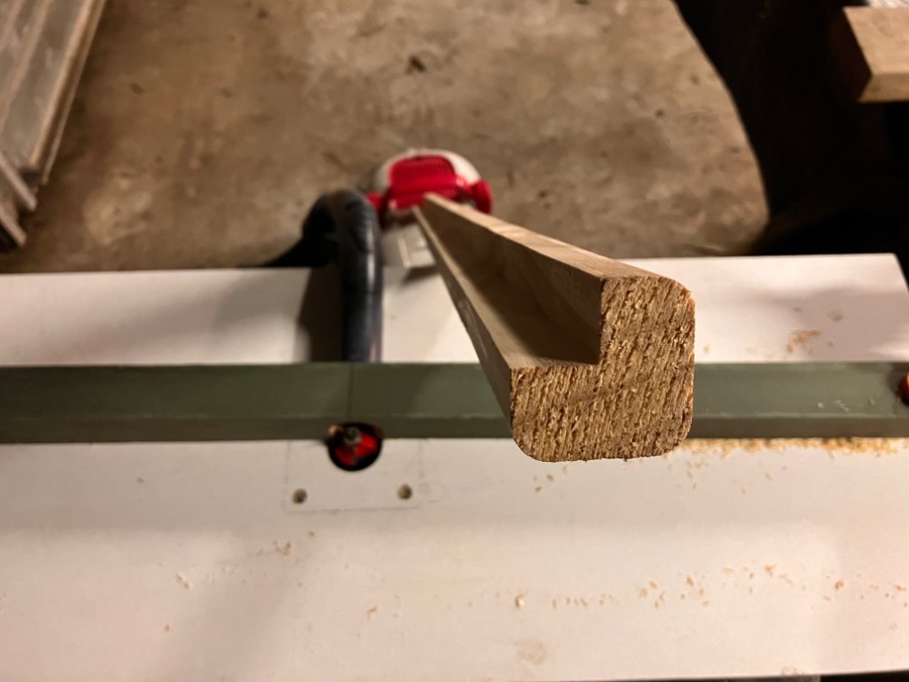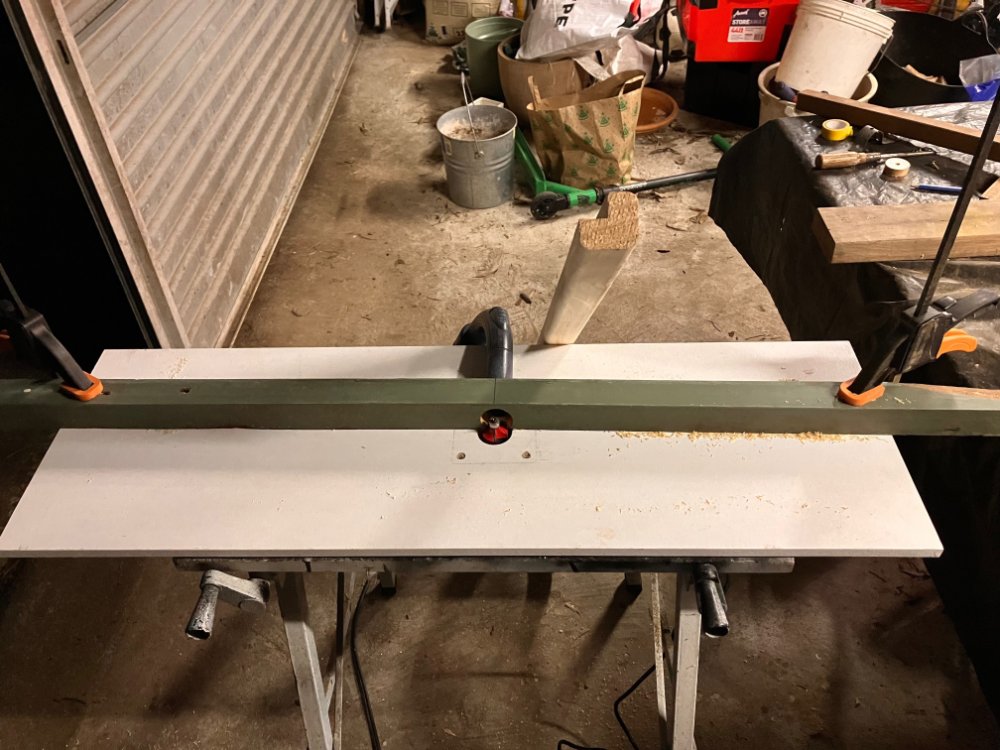 Secondhand router and bits from gumtree, router table made from scraps. Test toe rail profile in pine preparing for some recycled polyethylene...