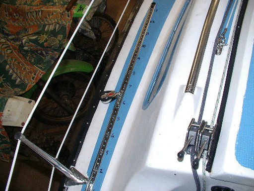 Thanks for the photo no-way, I fitted my new tracks more into the center of the walkway though. Funny enough, when I got into the bunk to tighten up the nuts on the track, I look up and see a row of holes with the same spacing right next to the holes I just drilled, I then felt the need to let fly with a few choice words , my loyal dog went and sat in his kennel for the rest of the day