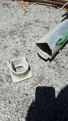 On check the mast step? I found the the mast had broken away from the foot which was still secured on the step. As can be seen the bottom of the mast just broken away, giving in around the rivets. Obviously over its long life this part of the mast must have weakened.