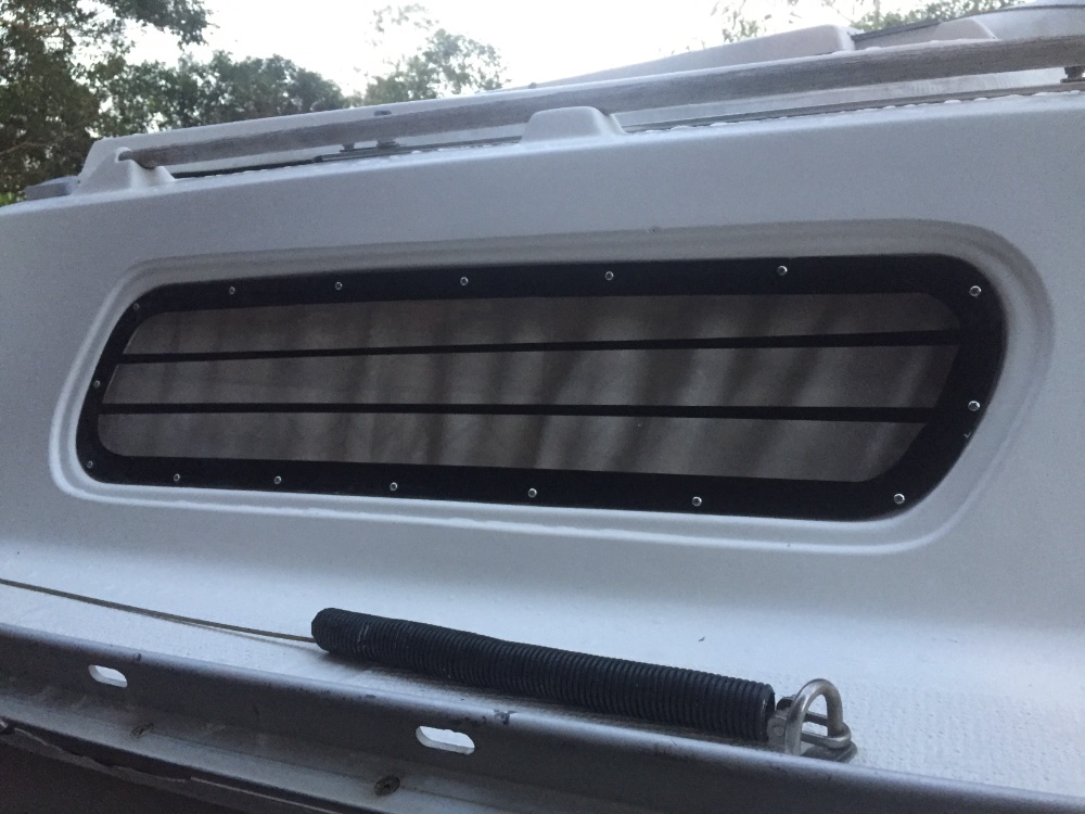 The job went a lot easier than Ozzie's, I guess because the perspex was new and easy to work. I think the cost was around $60 for the perspex, $10 for the blade, and $20 for the sealant. It really made a difference being able to see out the windows again.