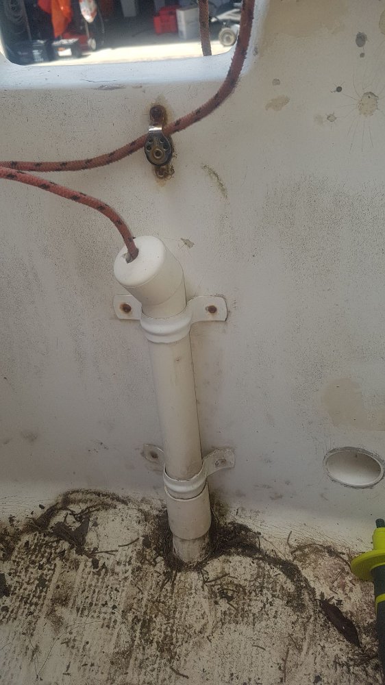 I think if I were redesigning this small area I would have the opening that comes up with the cb pull further forward above the cb end. You can remove the tube that flexes up to the cleat on the water as the open end is above the water line. It would be great to stick a solid rod down to free a stuck keel by giving it a good thump