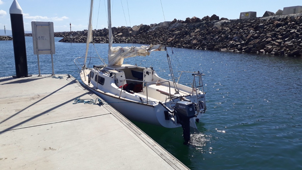 Coffee and donut at the Yachties a chat with friends then a brisk reefed reach back to Port Kembla harbour 20k NE Winds in heavy chop. Investigator handled it with ease. Glad of the large anti cavitation wings on the yammie.