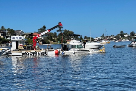 Driving back from the mooring today there was a lot of activity in Belmont Bay near the jetty with bulk rubberneckers on the shore. What looks like a local Bertrand Cruiser had sunk and was being craned to the surface by the local mooring contractor.
