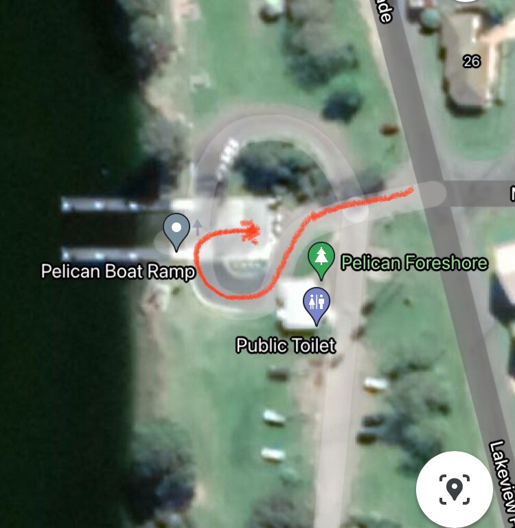 Andrew mentioned turning circles for the 563 on his thread about doing his driveway. Coincidentally we took Grizelgutz for a walk yesterday down past the refurbished Pelican boat ramp and had a chat to a member of the local fishing club retrieving his probably 14’ tinnie. He noted that geometry of the driveway is so sharp that he can’t pull straight into the rigging area and be aligned to just back in. He needs three shuffling manoeuvres. I took a look and he’s not kidding. See map.