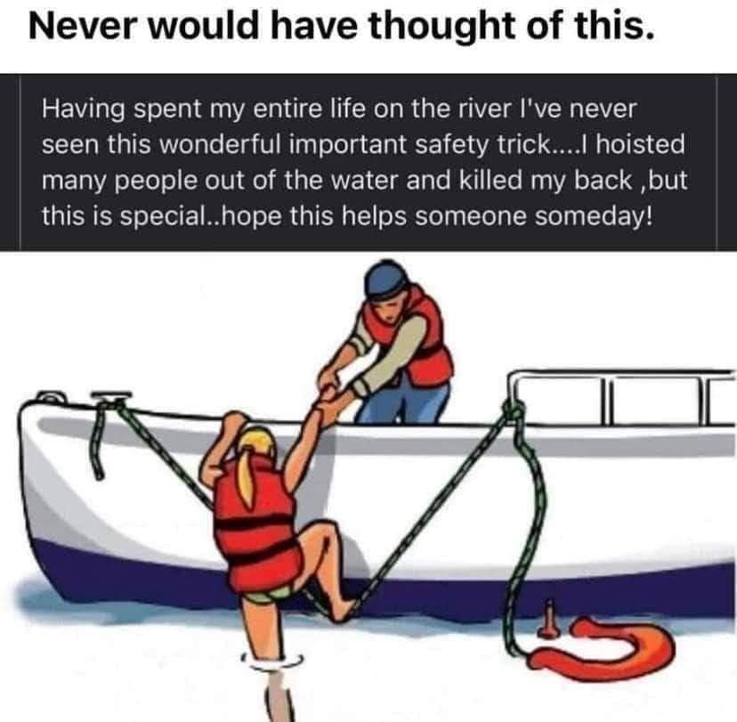 Great technique Peter, it could save someone's life one day, especially on boats without boarding ladders or if the MOB's (or WOB?) having difficulties. Quick and easy to rig up too.