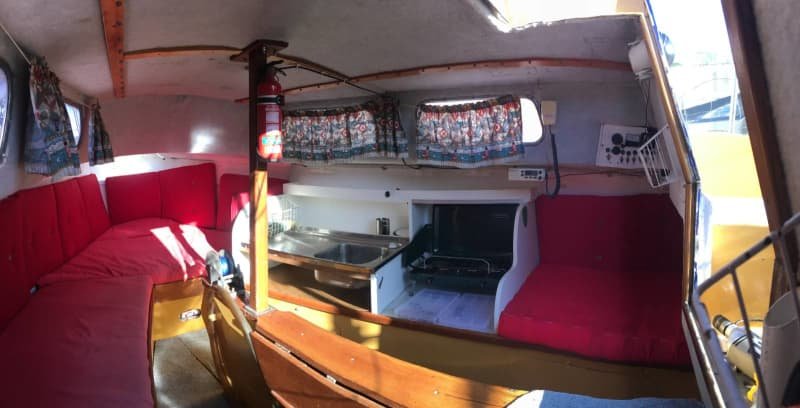 Cruising galley in cabin (with seat ontop of drop keel case)