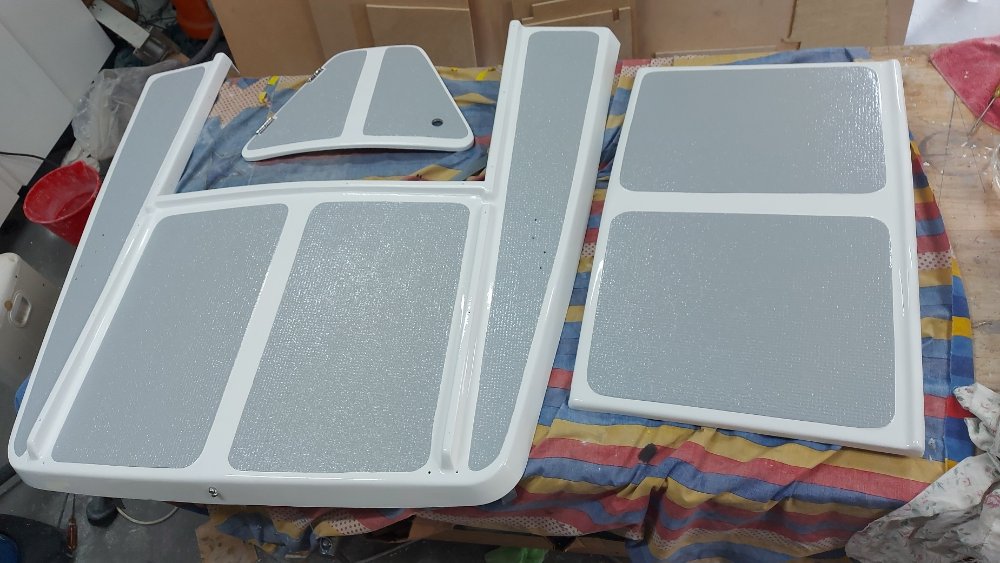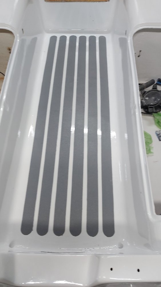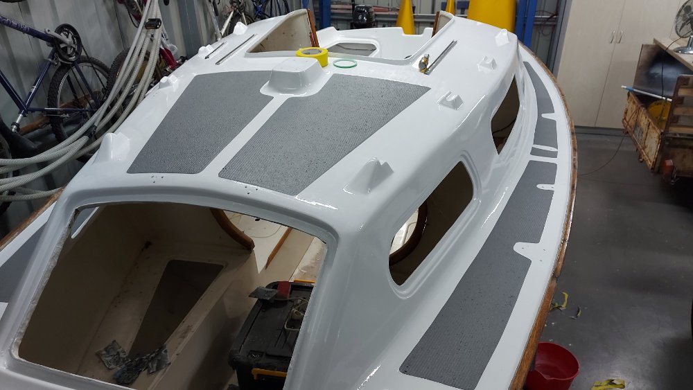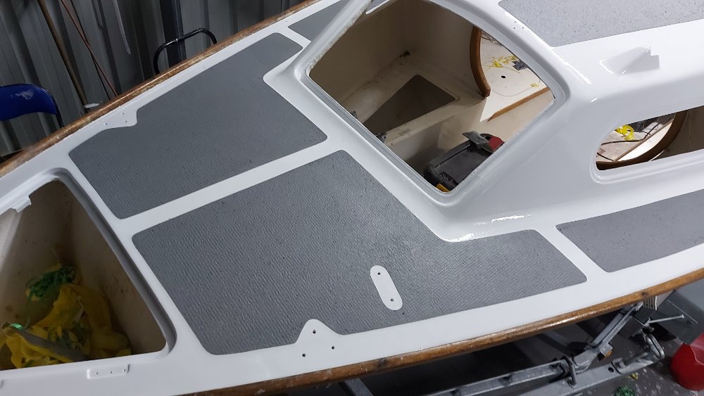 Hi all, now have the non skid areas done. Quite happy with the results, especially the lack of gel cracks in the cockpit area. See below.