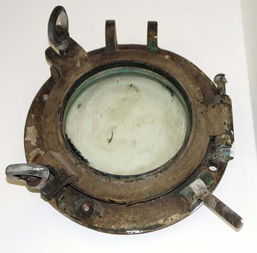 Interesting topic . WikiP notes that portholes also can have internal storm covers or blackout covers called "deadlights" which can serve two purposes, keeping light out for sleeping shifts or blocking light for military stealth. Your pic Geoff may have had a deadlight on the other hinge. The glass on this one is hinged at the top but it may have been smaller and lighter. It would be no fun getting beaned with a 10kg brass porthole while taking a little air