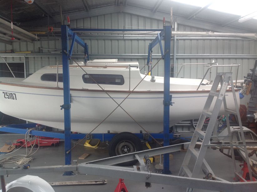 David, this is exceptionally important news for me. Mine is exactly the same at the moment. Thank you so much. I have placed the boat on the trailer in a position that supports the boat on the rollers so that where the lifting straps were would be just clear of the double rollers. I will need to see how far forward I can bring the boat and still have effective support from the rollers. If this is not enough, I will then move the axle back up to around 6 inches. This was the point of building it with the axle mounted to short lengths of 50 x 50 and U bolting it to the main frame. It gives adjustability, but it's not legal here in Tas but once it's spot on, I will re mount another set of Spring hangers and slippers to the frame also lowering the trailer by 50 mm. With the boat on the old trailer, it was exactly the same with not enough weight on the tow ball but the axle position Of the old one was a good starting position for the new one I thought as the draw bar is very heavy given it is built from 5 mm thick steel. Anyway, from what you say, I might only need to move the axle a small amount to correct it if at all. I was worried about the balance on the trailer for when I use the tilt function if I had to move the axle back too far. I guess that if I need to move the axle back and it makes the weight heavy on at the front for tilt function, it would probably only need a shove on the trailer on its rollers with the winch still connected but backed off by a foot or so before the tilt would then come into its own and then reverse winch it off ? Time will tell.