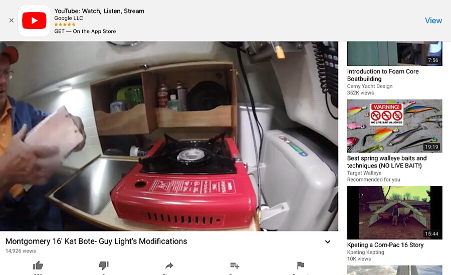 While looking at boat vids to amuse myself ( intermittently raining so haulout stuff intermittent too ;) ) I came across this old fellows vid on the interior for his sixteen foot micro cruiser. Not an investigator but thought his internal fitout was very clever and well executed. I’m hoping to add a few internal mods this time and I like looking at how others make interesting and intelligent use of very small spaces. I think his micro foldaway gallery is great.
