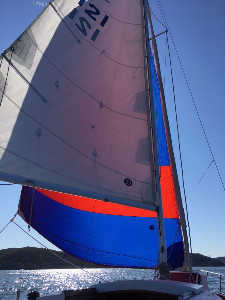 Thanks for the great Info Ian, will remember Lee sails cruising genakers for future reference. Your dousing sock must make it easy to handle.IanS wrote: ↑Fri Mar 26, 2021 4:05 pm My boat came with a symmetrical spinnaker which I haven't used. But it also came with this asymmetrical, I guess it's a gennaker, complete with a snuffer sock (the past owner obviously loved this boat). I've used it a few times and its great. Easy to use and good fit for the boat. The sail makers require the fore triangle dimensions (height of mast and distance from mast to tack). I use the bow roller for the tack adjustment and its in the perfect spot for the foot to sit just above the pulpit rail. This one is obviously ancient but I am sure there are similar sails around today.