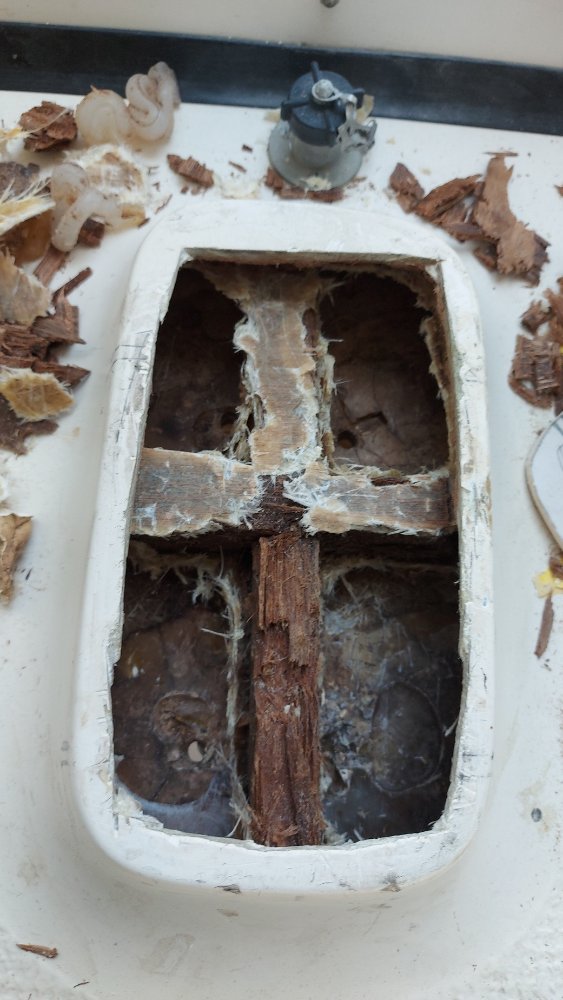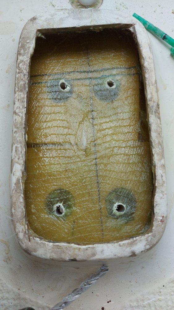 (I've read up on "Injecta deck" a USA structural foam product. It's not cheap but can bind with wet cores they claim...any thoughts on this approach? I'm currently leaning towards your method, stronger, better, probably cheaper too) Also too scaredy-cat to go ripping the top fibreglass layer off en-masse!)