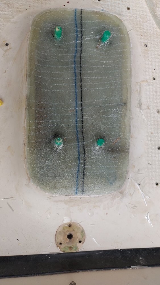 Once all but 1 layers of ply were fitted, I layer up 3 layers of double biaxle woven rovings ( super strong) which was also glassed on to the inside sides of the mast step molding