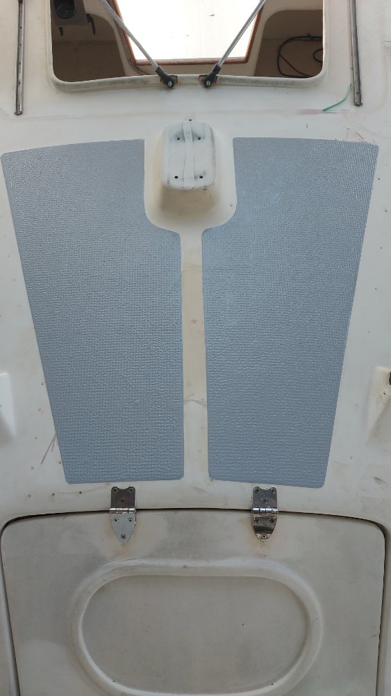 See here, I have injected my roof, and as it is now, it has grey epoxy primer on the non skid area and the white epoxy primer on the smooth areas has yet to be done.