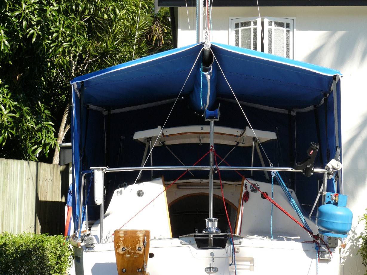 Yara came with a pop top cover and what appears to be a full length boat tent. The tent is rather bulky and I confess I have never bothered to work it out. She also has a boom awning, as well as the bimini!