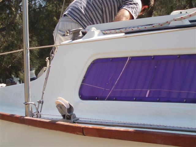 This 2nd pic below, shows a stand up block on the cabin, have on both sides, both have totally stuffed sheaves in them.