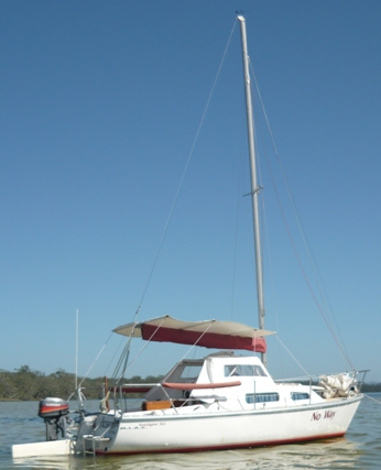 Pic of No Way on the Myalls with pop top cover and boom awning.