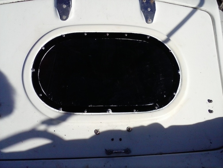 I left on the mask to keep the sika off the internals for the final inside sealing bead. I had to peg the corners with a small through stainless bolt to acheive the required bend and also put one in the bottom. Flipped the hatch and drilled from the inside with a very fine drill to define the screw points then closed the hatch and drilled just the perspex the other way with a drill just larger than the self tapers to stop cracking when they are tightened