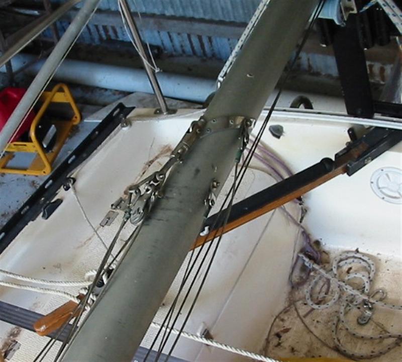 Hi Folks, as already posted i picked up my "new " I563 #004 " from Sydney the other day and am in the process of getting sorted. The mast has THREE sets of shrouds coming off it. One fitted just under a swept back Spreader, a second one at the forestay hound and a third at the masthead. The top Two go through the spreader tip and meet up at the chain plate using a triangular piece of s/s plate and share that position. The third and lowest one which is lighter gauge is a bit of a mystery. I haven't attempted to put mast up yet so it's still a bit of a tangle from the delivery but I thought ide seek your advise before trying. I'm puzzled by THREE SHROUDS and only ONE DEE BOLT ( chain plate position ) Is anybody able to shed any light on the issue. It just seems a bit overkill to me but I'm new and ide appreciate any feedback.