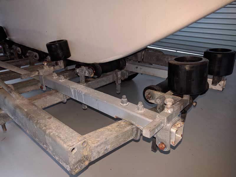 Just reading through old posts and my next trailer job happens to be keel side rollers. ! My first attempt at attaching the originals has failed, they are too far apart by about 1" each side .so may just weld the axle posts straight onto the aft beam , which was the method my trailer had before. Have considered going wobble rollers but this should be cheaper.