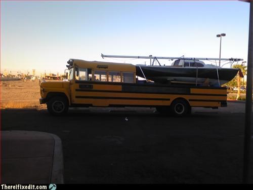 At least he's saving on trailer rego..! but how on earth does he get it down and into the water?
