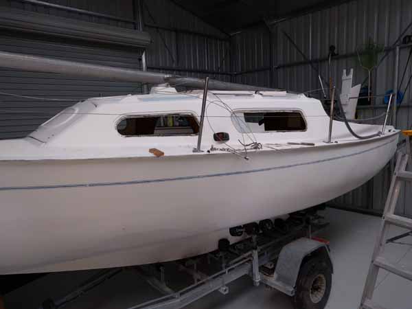 As a start to the project, I decided to build a shed so that I could work under cover and also have somewhere to store the boat.  If you measure up the length of boat and trailer, you find that you need a pretty big shed to fit it in.  I only have a suburban block, but less mowing is always good.  Here are some pics of the shed.  I’ll post pics of the work on the boat as things progress.