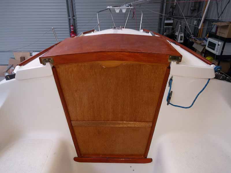 My boat was missing the original fibreglass sliding hatch when I purchased it.  At some earlier time, a wood hatch had been fabricated along with bat-wing doors instead of wash boards.  I thought about fabricating a fibreglass hatch this time around but eventually decided to just make a new wooden one.  Making a plug for the fibreglass hatch would be difficult especially seeing that I don’t have an original to copy from.   (I’ll leave that project for some future date.)  I decided also to replace the bat-wing doors with washboards in case I get brave enough to take the boat through the seaway.
