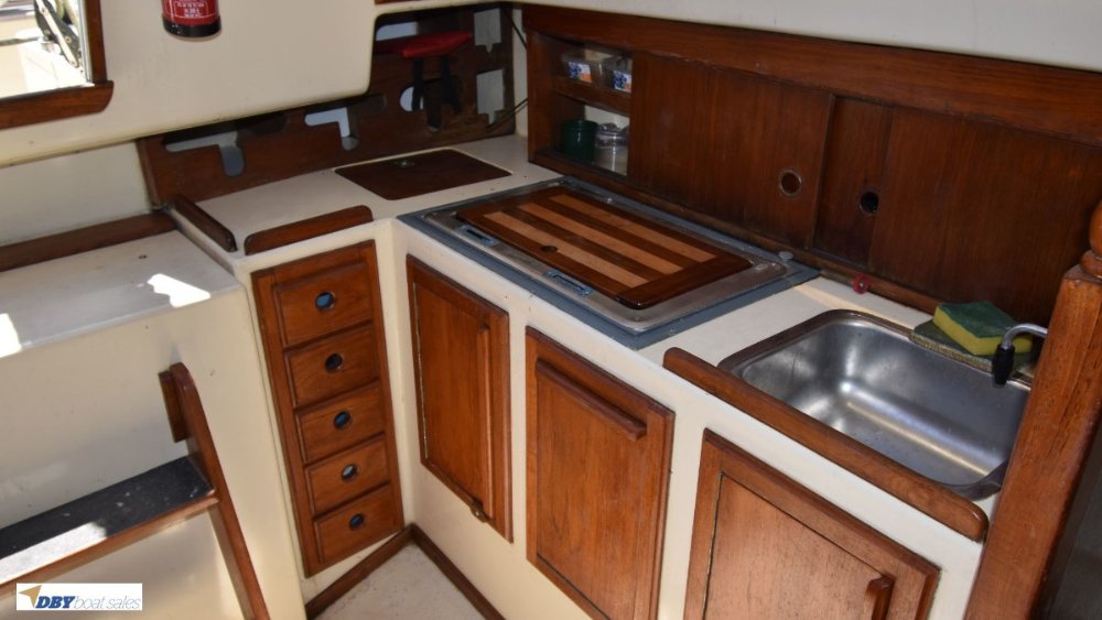 I was looking for a simple day or weekend sailor with a good fit-out and capable of short handed sailing. The photos and the description was very attractive so I took a look at the boat on several occasions. Unfortunately the photos were not current and the condition of the boat had deteriorated due to neglect and staying locked up for more that a year in Sydney's humid weather. I figured on a good internal clean-out of the black bilges and sticky woodwork would return it to a good internal appearance. Being a fist time purchaser I had a Per-purchase inspection carried out and the results came back as expected; needs some work to restore some areas and basically sound. Areas needing immediate attention was the corroded aluminium windows that were leaking, the standing rigging is "original" and beyond the 10 year age for insurance. The 10HP Bukh need a good service and the 27MHz radio replaced with VHF.