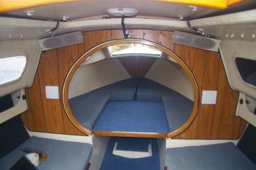 Interior of TIKI showing two-tone gloss enamel paint finish on walls and cabin roof.