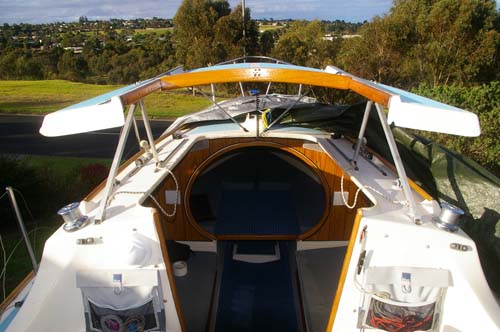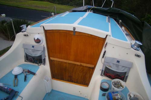 The previous owner didn't like using the pop-top, as he said it let in too many insects when he went camping out on the water overnight down at the Gippsland Lakes. So he dismantled most of the fittings and bolted the pop-top firmly to the coach roof; fortunately though, he kept all the bits and pieces and gave them to me when I bought the boat.