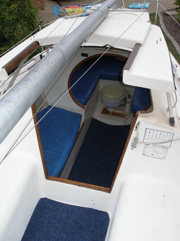 Note the open cabin sole (floor). The pump out toilet is not typical