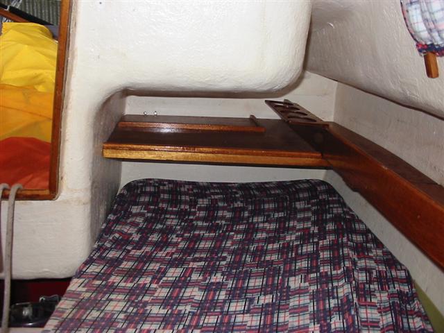 Port side aft cabin. <br />Note the slide-in table under. Also had a hatch on the RHS for emergency gear.