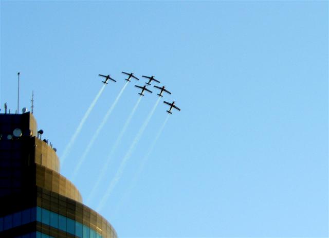 Anchored near the Story Bridge (best spot) and not only had a great view of the fireworks but the F111 dump and burn, as well as the Roulettes right over the boat.