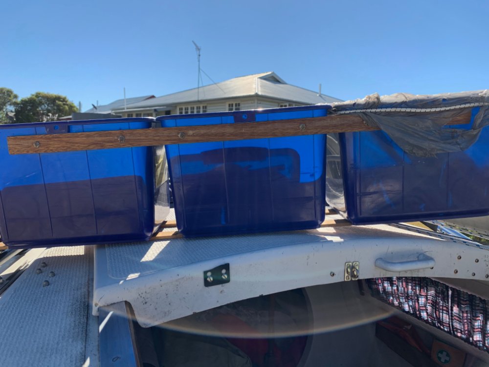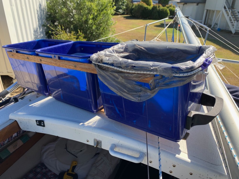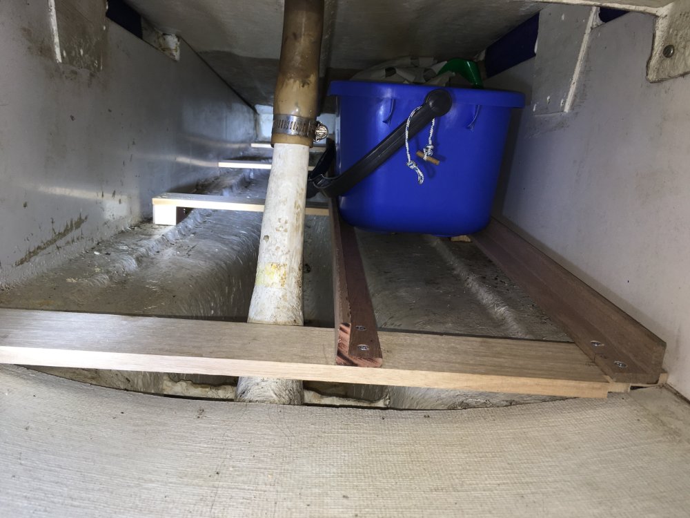 I suspect bilge floors under the cockpit vary from boat to boat.I also have same amount of buckets on either side and pull out one side at a time so they don’t fall into the middle gap. Also the alloy handle clasps connecting the buckets I made all those years ago fiddly and not the best. I still use them but re-usable cable ties (now in Aldis I notice) probably a better idea.