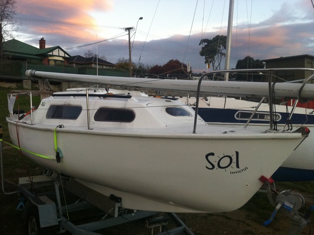 she has been a wonderful boat and has handled some very heavy weather very safely, but most of all has been a kind boat that has given me hours of joy.... I will never forget my last trip... 4 days out with my partner in the Huon - Channel, we had sunshine, Jayne caught (yep she fed us) nice flat head and on the last day we made it home with 40knot + gail on the nose.... yes... the main down rolled furler going up river and the Honda 5hp certainly showed it had the guts to push us through the chop. wet we did get, but safe we also felt, even if we were the only boat in the Channel apart from one big tug ... ha ha ha... wonderful memories.