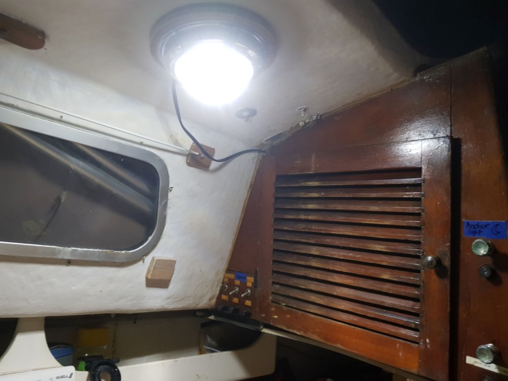 (Had to move the forepeak dome light from centerline to the side, as not enough headroom. )