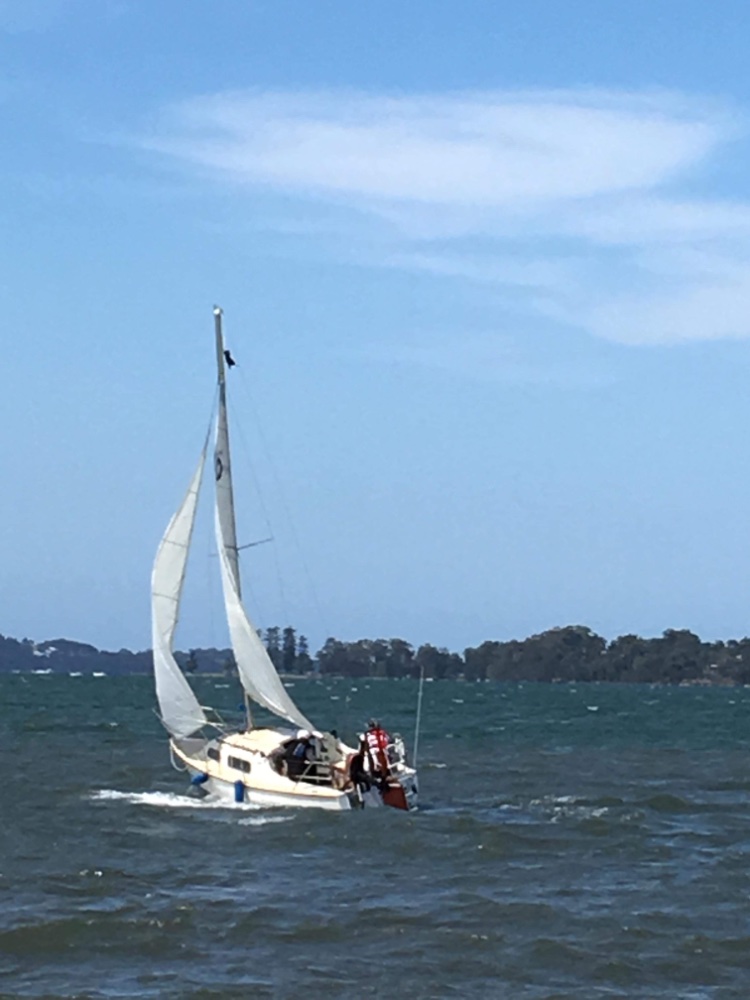 Just adding a couple of photos of a sail we had on Lake Mac a few years ago. Blowing a consistent 15knots+ we put the reef in and the smallest jib I had at the time. Sailed well, lots of helm, but we got hit with a few bullets which made things interesting. The pictures are of Law&Disorder on a broad reach being hit with a few gusts and the boat leaping out of the water as I try to ease gear like crazy. Pushed the boat to its limit and was never let down.