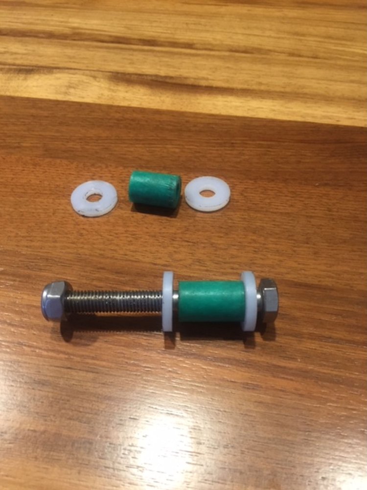 this is the new pivot bolt not yet cut to length and the washers and bush made of the same nylon