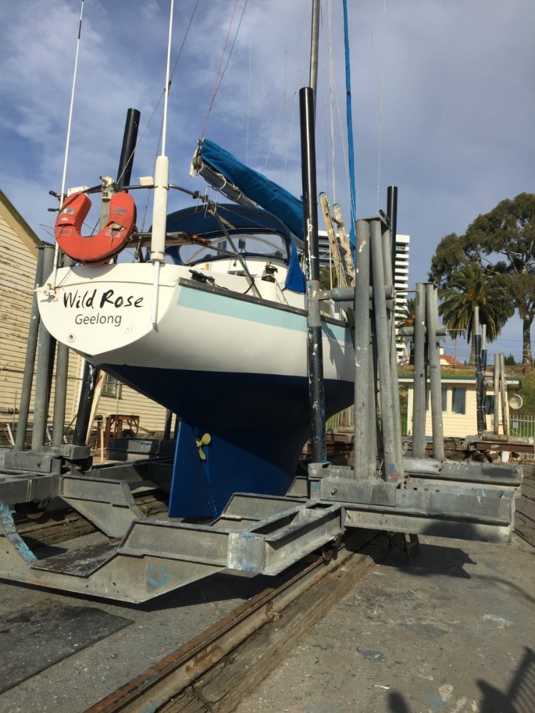 That's good news about the Mottle 33's skeg rudder. Found a couple of slipway pics of the underbody, sounds like a nice cruiser.