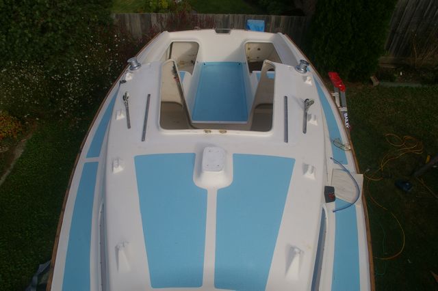 I'm also preparing the deck for repainting - but only in the textured areas that were previously light blue when I got the boat. I plan to wet and dry scrub the white sections of deck gelcoat, then polish these to bring back their lustre. Ditto with the hull, which is in good nick but a little stained.