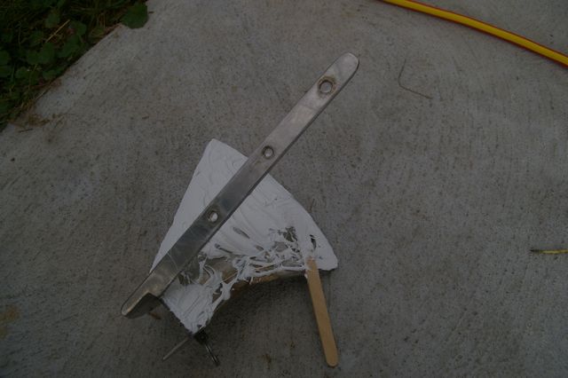 Then I cleaned the deck area with acetone, to remove any water and dirt before placing the metalwork (with its silicone coating beneath) back into place.