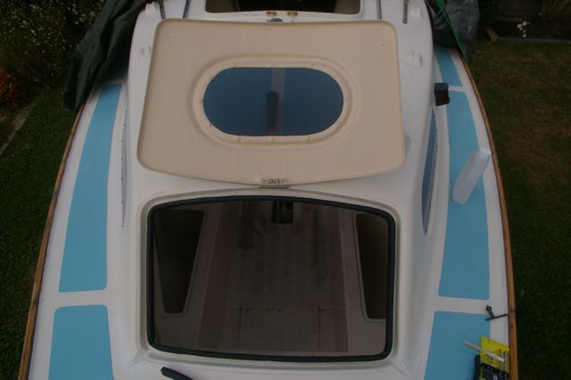 The hatches (etc) that you see in the pics were there when I bought QUMBU and look as if they have always been there. Certainly no evidence of a later refit. The previous owner had the boat for 17 years, and I know he did no major glass work on the interior.