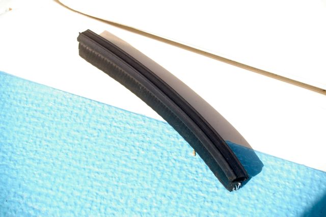 Close-up of the edge trim strip, which pinches tight onto the fibreglass hatch edge without the need for glue.