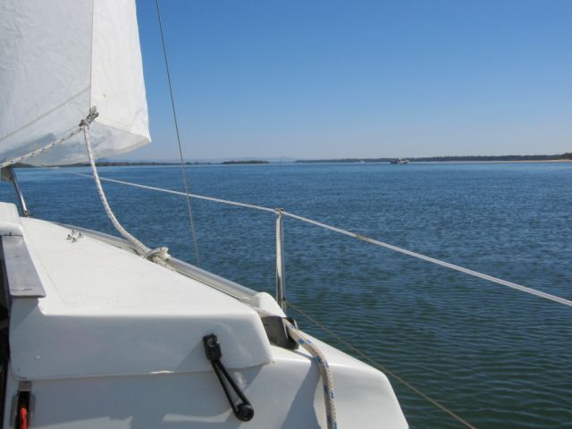 The day was lovely, the only let down was that the wind was in hiding. After travelling up the passage we had lunch and started our return. By this stage the tide was coming in and with little wind coming straight up the passage we motored some of the way back.