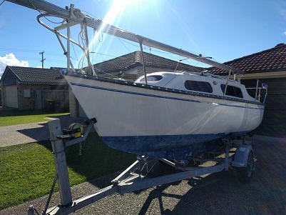 . As for my boat, I really don't know much about her. I bought her from an elderly couple in Maryborough Qld - her previous owners only had her for a little while, and couldn't give me any information about her history. I've registered her as 'Clever Girl' but after sanding down the stern of the vessel its revealed what I think could be Tarrewa -- but it's impossible to know for sure as the letters are incomplete and faded. My sails are not original and so their numbers don't provide any help in identifying where she falls in the production order. My hull identification plate reads "AU - WWA035399 - AB7" but i can't find out what that actually means...